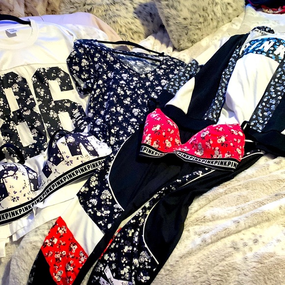 Omg here you go long sleeve jersey t, flower top with tag 2 bras with tag leggings with tag hoodie with logo on hood front zip and tshirt All brand fire new