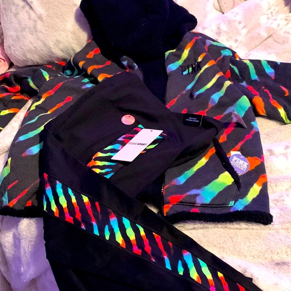 New with tags I also have the sports bra but I can’t locate it I know it’s here though no offers this jacket is fully lined Sherpa