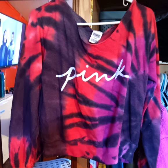 a pink tie dye long sleeves off the shoulder size med
