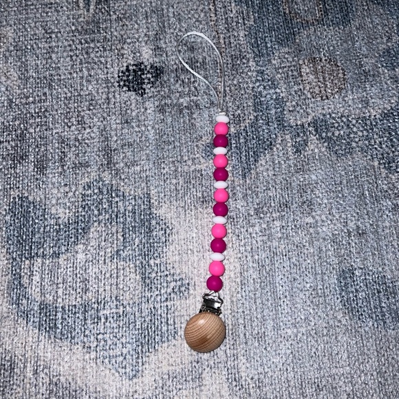 Pink paci clip with silicone and wooden beads!