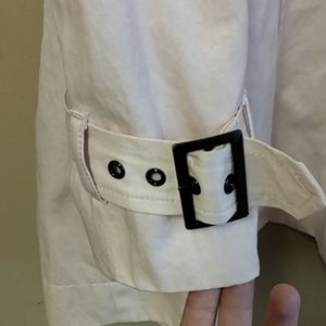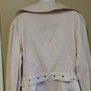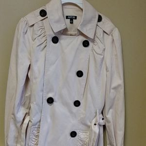 Pink Apt 9 trenchcoat! Has 10 buttons that can be buttoned on both sides. This stylish coat has a belt that wraps around it, and cute little belts around the sleeves as well. Perfect for spring! Size small.