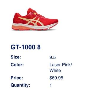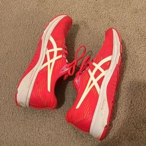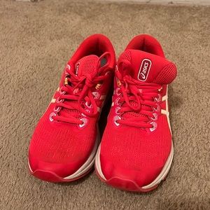 Pink ASICS, size 9.5, no major scuffs but worn a few times. Still in great shape