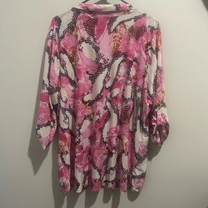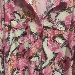 Pink Abstract Print Button-Up Blouse