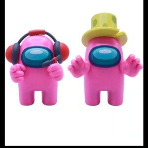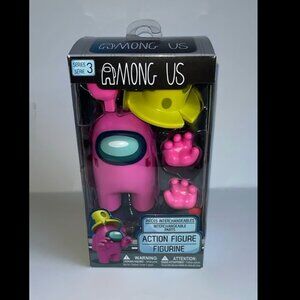 Among Us Pink Figure with Cheese Hat Pink W/Cheese Hat Each action figure comes with two different sets of hands and two hats to accessorize your Among Us character. Officially licensed Among Us Action Figures