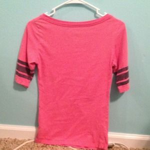 Aeropostale, Half Sleeves, V-Neck, Pink with Polka Dot Numbers, Navy Stripes on Sleeves