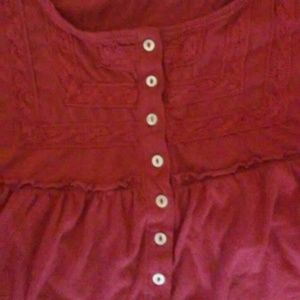 This is a pink Aeropostale tank top. It has lace and button detailing. It has elastic about halfway dow the shirt. Size M fits small.