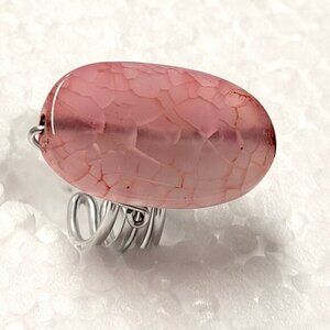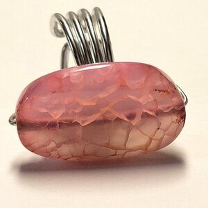 Pink Agate Veins Ring Adjustable Band Handmade Semi Precious Ring