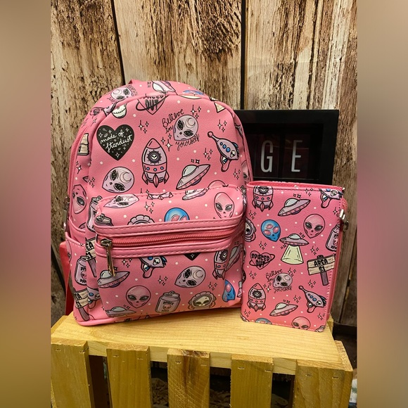 Pink Alien Mini Backpack & Wallet Set