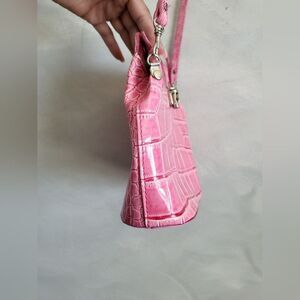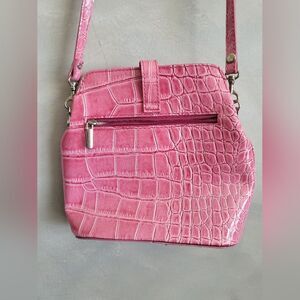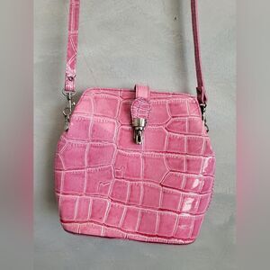 Pink Alligator Croc Embossed Small Leather Bag Made in Italy 8 x 8