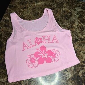Embrace a tropical vibe with this pink ribbed tank top featuring a bold 'Aloha' floral design. Perfect for casual outings and beach days.