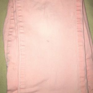 Stretch jeggings. Size 2 regular. Light pink color. Worn but still lots of life left. Small mark on back pocket and near left knee. Both are visible in last two pictures.