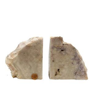 Pink Amethyst Bookends! These stunning bookends are crafted from the rare and beautiful pink amethyst, a crystal that is only found in the El Chiquada mine in Patagonia, Argentina. With its unique and captivating color, these bookends will not only keep your books organized but also add a touch of elegance to any space.