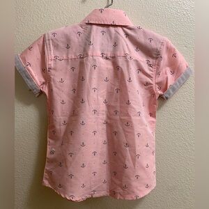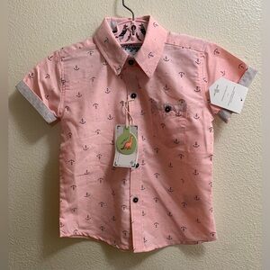 This stylish pink button-down shirt features a charming anchor print, perfect for your little one's wardrobe. Crafted for comfort and style, it's ideal for any occasion.