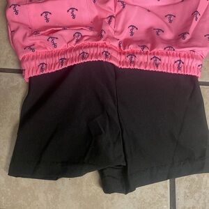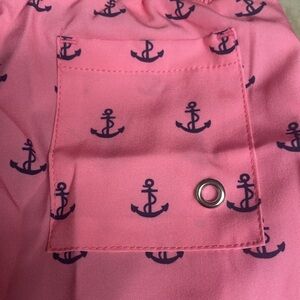 Stylish pink swim shorts with navy anchor print. Perfect for beach day