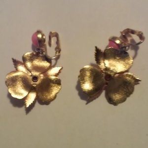Pink And Gold Clip On Earrings Hangs 1 3/4" x 1" Wide Used