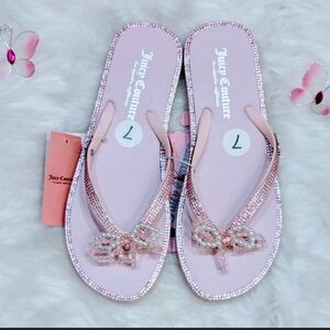 Pink and Pearls juicy Couture flip flops. Beautiful baby pink with pink sparkling Rhinestones.