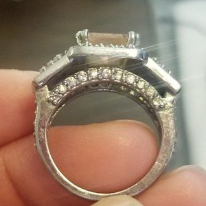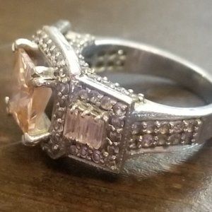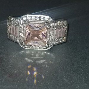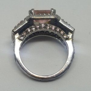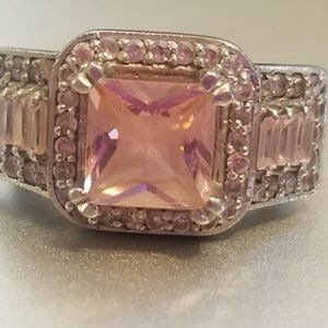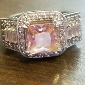 Vintage pink and white cz wedding/ engagement ring, size 3.75.