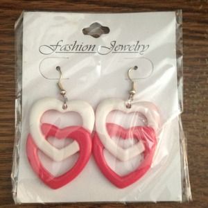 Pink And White Heart Shaped Earrings