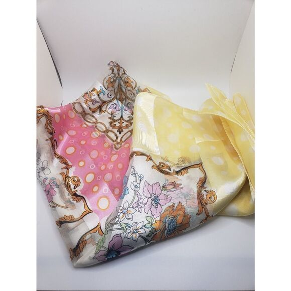 Pink And Yellow Floral Silky Fashion Scarf Summer Scarf