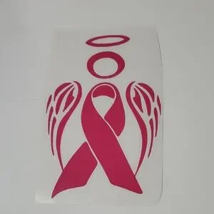 Charming pink angel ribbon sticker. Ideal for decorating personal items.