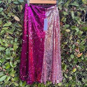 Pink Anthropologie NWT Fully Sequined Color block Skirt Endless Rose NEW XS Prom
