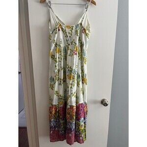 Pink Apple Floral Smocked Maxi Dress Women’s Large Boho Flowers Strappy