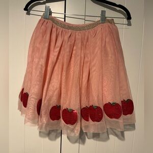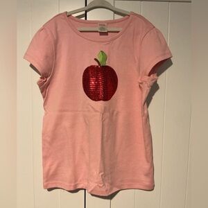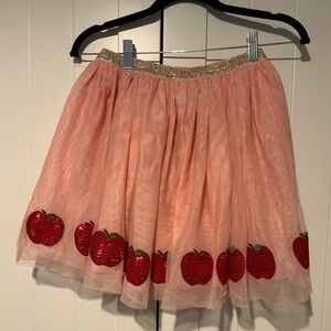 Adorable pink kids costume featuring a sparkling apple design. Perfect for playful dress-up days.