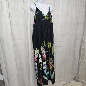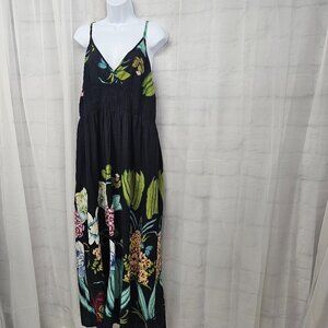 Pink Apple Navy Blue Floral Maxi Dress Halter Tropical Beach Boho L