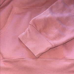 Pink sweatshirt featuring Arlington Hardware graphic design. Hooded