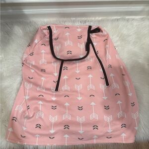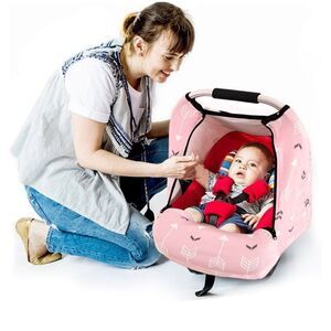 Keep your child cozy with this stylish pink car seat cover featuring a charming arrow pattern. Perfect for adding a touch of fun to your child's travel gear.