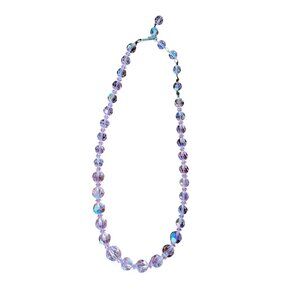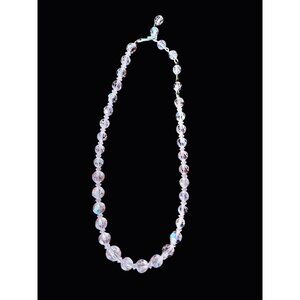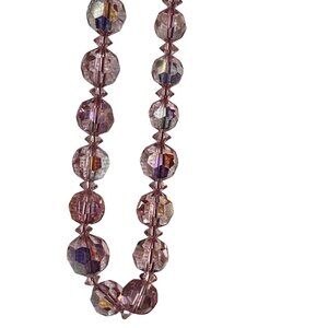 Pink Aurora Borealis Faceted Glass Bead Necklace 18" L Vintage