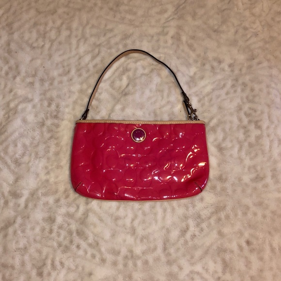 🌸👛Signature Stripe Embossed Patent Small Handbag. Beautiful, pink, authentic Coach handbag.👛🌸