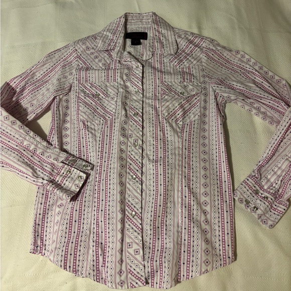 Pink Aztec print pearl snap shirt