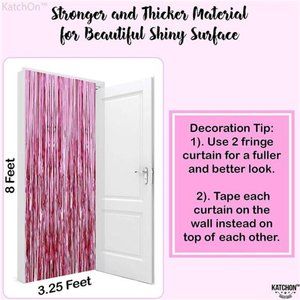 🧿XTRALARGE 6.4X8 FEET | PACK OF 2, PINK STREAMERS BACKDROP - Thinking about what to add on your party backdrops? With this Pink Fringe Curtain Backdrop, you can make an elegant entrance curtain for your pink party decorations. Let them be amazed with your great DIYs with pink foil fringe curtain. This package contain pack of 2 pink tinsel backdrop with xtralarge size of 6.4x8 Feet at the center of your Occasions like Pink graduation decorations 2023, flamingo party decorations.