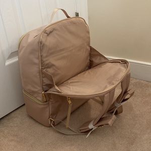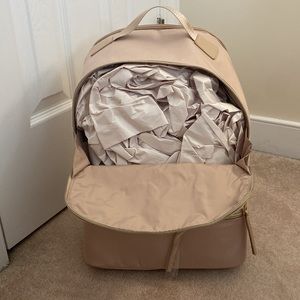 Brand new (never used) soft pink backpack; multiple sections - 4 total; original packing; color is close to rose gold