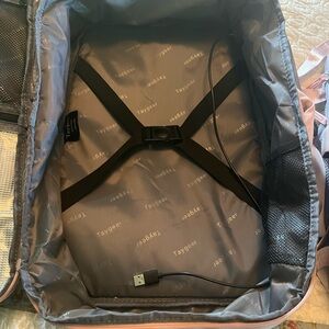 Stylish and functional, the pink backpack is perfect for daily use. Its sleek design and durable material make it a great choice for any occasion. You can also pack this for personal item and place clothing in packing cubes as well as travel size items. Minimize the luggage fees. Like new condition.
