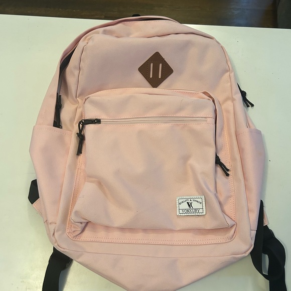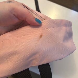 Stylish pink backpack perfect for everyday use. Features a spacious main compartment and convenient front pocket. Small makeup stain at the top; could be removed. (See photo)