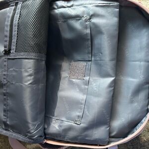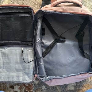 Taygeer Stylish pink backpack NWOT with multiple compartments. Perfect for travel or daily use. Folds up really nicely. Has lots of space and comes with its own charger. Has a strap to fit around suitcase as well. Holds a laptop securely and has a space for shoes. MSRP$30