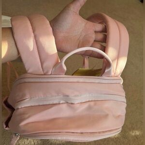 Stylish pink backpack with multiple compartments. Perfect for daily use.