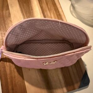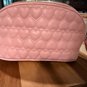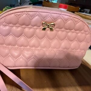 Not used. Cute pink make up bag 9or for whatever! Wrist handle.