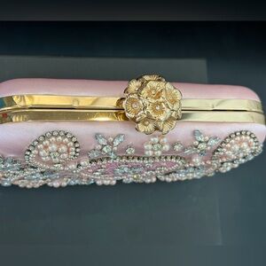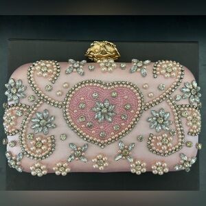 Pink Barbie Heart Evening Bag with Pearl and Rhinestone detail