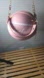 Unique pink basketball shaped crossbody bag with white lettering. Features gold hardware.