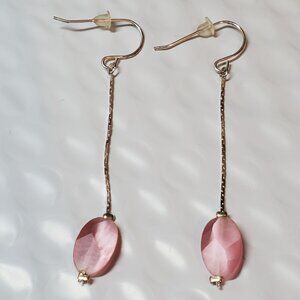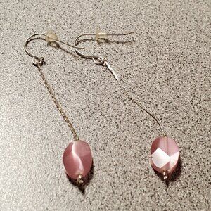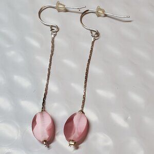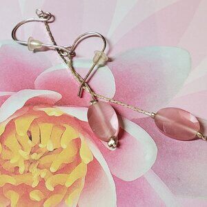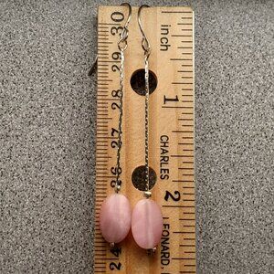 These delicate earrings feature a stunning pink bead gracefully suspended on a slender silver chain. The subtle shimmer of the bead adds a touch of elegance, while the lightweight design ensures comfort for prolonged wear. Ideal for adding a romantic flair to any ensemble, these earrings are both timeless and versatile.