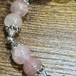 Elegant pink beaded bracelet featuring silver moon and star charms. Perfect for adding a touch of charm to any outfit.