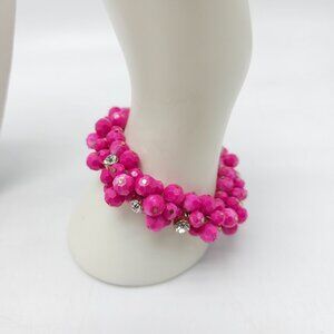 Pink Beaded Necklace Bracelet Jewelry Set Rhinestone Bead Accents Cha Cha
