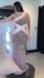 This elegant pink beaded gown features a sophisticated one-shoulder design, perfect for weddings or formal occasions. The sleeveless style and flowing silhouette create a timeless and graceful look. Ideal for wedding guests seeking a refined and stylish ensemble. Pink beaded crystals throughout and chiffon over the shoulder piece that drops to the floor. Size Small