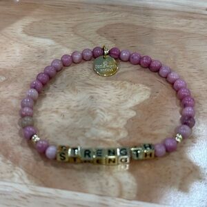 Pink and gold toned beaded bracelet featuring 'Strength' lettering. Perfect for adding a touch of inspiration to your style.