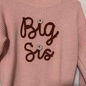 Adorable pink sweater with 'Big Sis' embroidery. Perfect for a little sister.