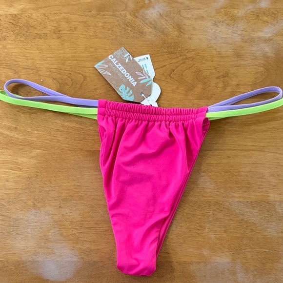 Stylish and vibrant pink bikini bottom by . Perfect for a day at the beach or pool.