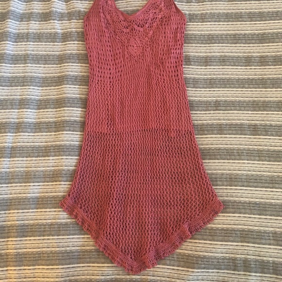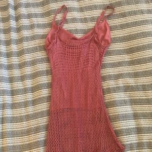 Adorable pink dress with see through bottom perfect for a beach cover or relaxing by the pool!